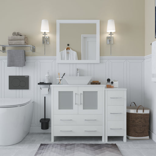 Original price $1,440.59Original price $1,440.59 - Original price $1,440.59Original price $1,440.59Current price $1,158.99$1,158.99 - $1,158.99Current price $1,158.99| /Ravenna 48" Single Sink Bathroom Vanity Combo Set, 8-Drawers, 1-Shelf, 3 Cabinet White Engineered Marble Top and Ceramic Vessel Sink Bathroom Cabinet with Free MirrorHomeBeyondLow stock8-Drawers, 1-Shelf, 3 Cabinet White Engineered Marble Top and Ceramic Vessel Sink Bathroom Cabinet with Free Mirror VA3124-48W, VA3124-48E, VA3124-... View full detailsOriginal price $1,440.59Original price $1,440.59 - Original price $1,440.59Original price $1,440.59Current price $1,158.99$1,158.99 - $1,158.99Current price $1,158.99| /Save 20% Save %
