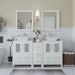 Ravenna 60" Double Sink Bathroom Vanity Combo Set, 7 Drawers 2 Shelves 3 Cabinets White Engineered Marble Top and Ceramic Vessel Sink Bathroom Cabinet with Free Mirrors